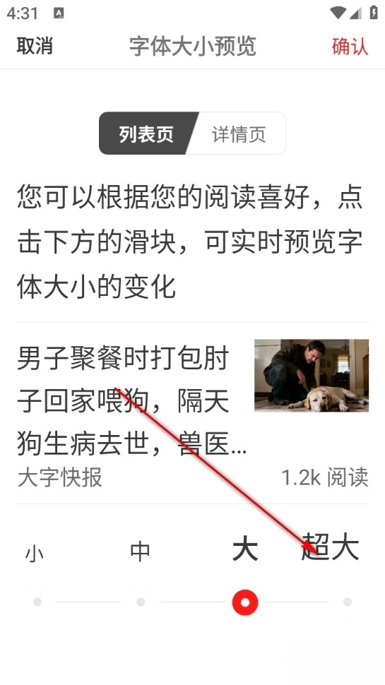 大字快报(曾用名:快讯大字看)是一款聚焦各领域新闻资讯、主打大号字体直观展示的软件。它采用大号字体呈现各类资讯内容,确保不同年龄段的用户都能清晰阅读,尤其为老年群体提供了舒适、清晰的视觉体验。平台汇聚海量资讯,覆盖生活、体育、娱乐、健康、小品等多元领域,丰富的内容类型可满足用户多样化的阅读喜好,让大家随时能找到感兴趣的资讯。同时,资讯以图文、视频等多种形式呈现,极大提升了查看的便捷性,超多有趣内容更能让生活变得丰富多彩。