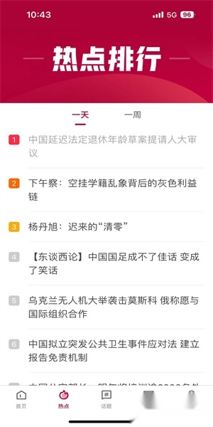 在热点界面能够查看最新的热点排名情况,包括最近一天、一周等不同时间范围的内容。