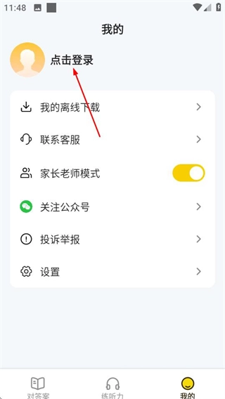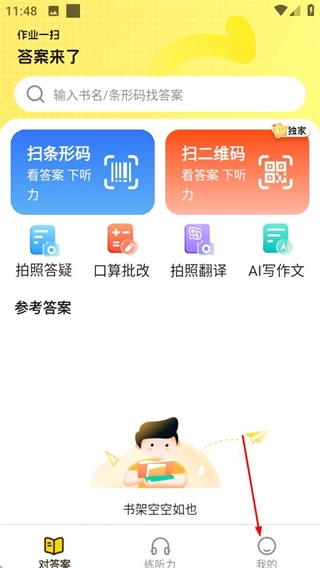 在答案来了首页,点击底部的“我的”选项,即可进入个人页面。