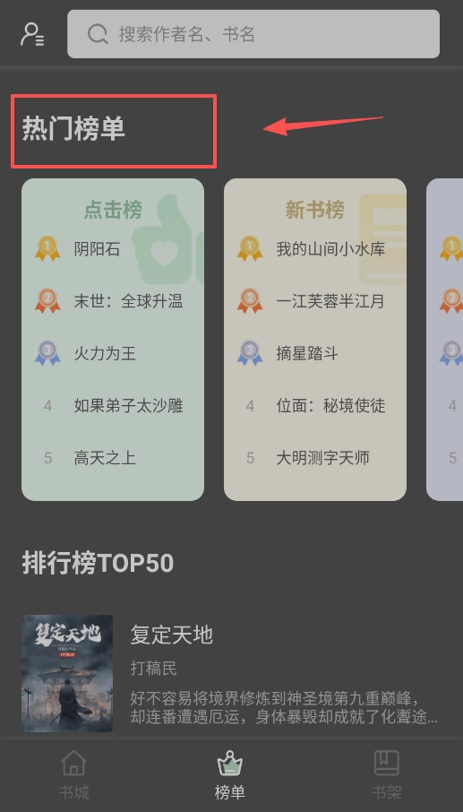 你可以在首页顶部的搜索框里直接输入书名或作者名来进行精确查找,这样能帮助你快速了解当下的阅读趋势。