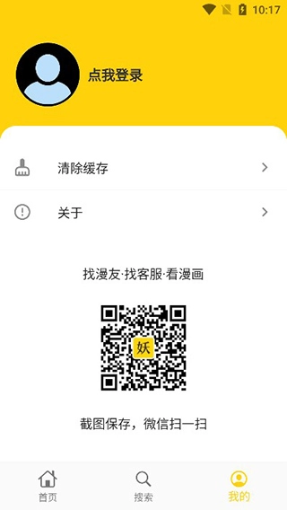 5、在“我的”页面里,用户能够查看缓存内容,还可以随时联系客服来解决遇到的问题。