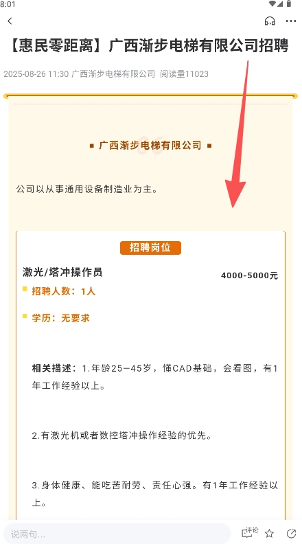 在招聘信息列表里,点击对应的岗位条目就能查看详细信息,里面包含了薪资待遇、岗位要求以及联系方式等内容。