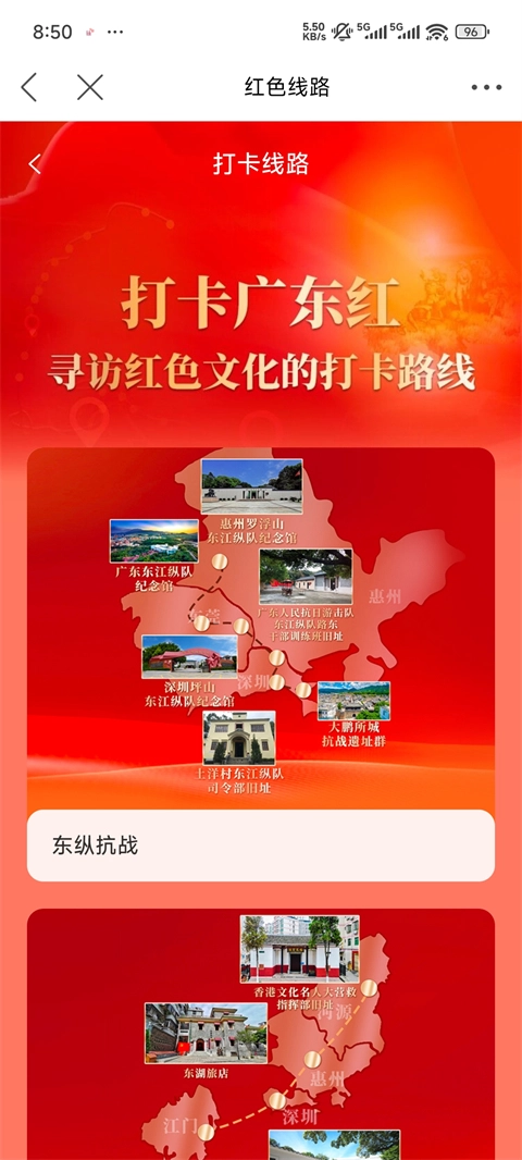 3、打卡广东红内有打卡线路,可畅游广东红色地标