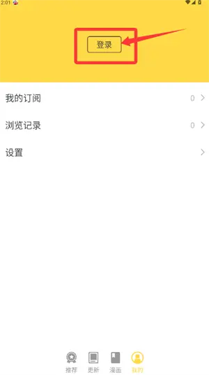 2. 前往“我的”页面,点击页面上方的登录入口,进入账号验证界面。
