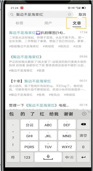 3、在搜索框内输入文章名称,点击相应文章就能进入查看。