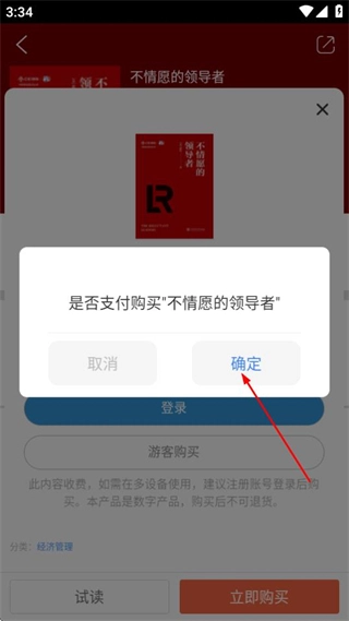 5、在确认弹窗里,点击确定按钮,就能完成图书的购买流程了。