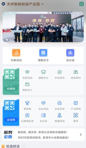 成都新津是一款服务于园区办公、生活人群的软件,软件可以一键连接智能生活办公,为企业和个人提供便利。系统界面包括优惠福利、生活服务、资讯推送、企业服务等内容。“津津通”是成都市新津区为实现当地“聚人气、汇产业”的目标而打造的覆盖产业园区全场景生活生产的数智化平台。
