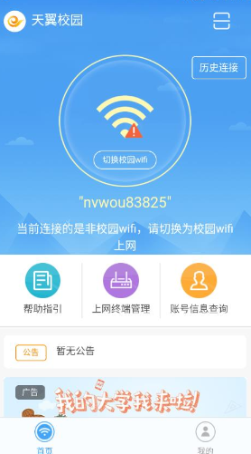 天翼校园app是一款专门管理网络连接的软件,本软件可以帮助用户快速连接校园网络,帮助诊断网络状况和速度,给校园用户提供一个安全快速的上网环境。
