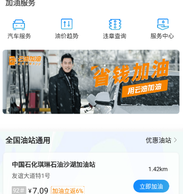 云油app是一款汽车加油软件平台,用户可以通过云油加油app查看附近的加油站,并提供最优路线导航,app中还可以查询违章记录。