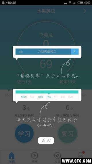 5)点击“学习“,进入单词学习界面,中规中矩。