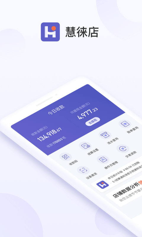【慧徕店APP】-慧徕店APP是专门为商家量身打造的移动客户端,具有随时随地查看门店收银记录,查看店铺信息等功能。慧徕店支持查看店铺收银记录;查看店铺退款记录;查看店铺信息。