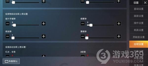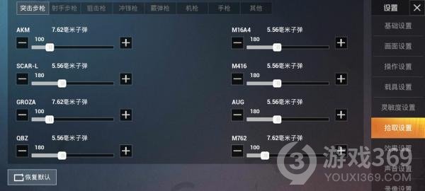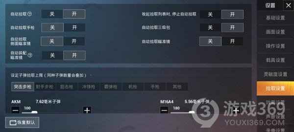 而对于自动拾取瞄准镜功能,建议大家关闭,不然,在舔包的时候很容易捡到自己不需要的倍镜,占了背包空间!