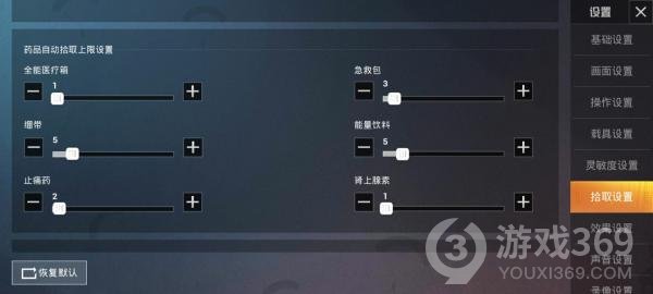 在诸多药品当中,全能医疗箱和肾上腺素是比较占空间的,但是二者的作用都比较大,大家可以设置上限为1个,喜欢充当狙击手或者单排的特种兵,可以考虑设置上限为2个。