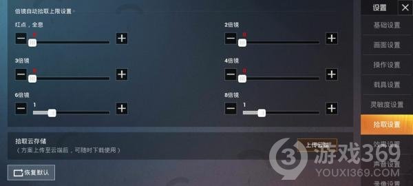 当然,如果你选择开启自动拾取瞄准镜功能也是可以的,不过,记得在倍镜自动拾取上限设置中将自己不常用的倍镜拾取上限调为0,等需要用到时手动拾取即可。