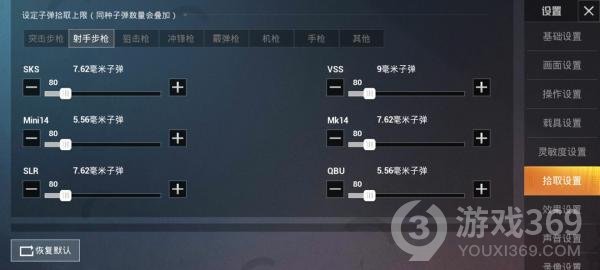 如果不是频繁近战的话,7.62mm子弹的系列步枪设置80-120发就足够了,而使用频率较高的5.56mm子弹系列步枪可以将拾取上限设置为180发。