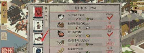 2、点击任务后的【前往】,然后找到徽州府的任意徽商,并完成一次交易。
