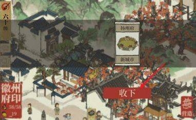 4、最后点击收下扬州府,就可以得到新的城市【扬州府】。