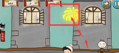 1、坑爹男能点燃顺利升空的烟花只有右边的那个了,所以玩家点击如图烟花,坑爹男就会去点燃它,让它升空。