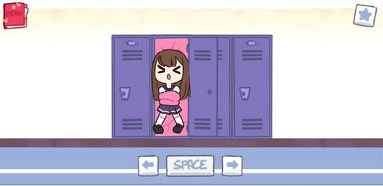 2、注意观察柜子外面移动的女孩,如果有女生经过就可以按下space键抓捕女生;