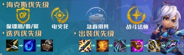 最优的是保镖心/徽/冕、电火花(极大增加伤害)、急救用具(极大增加护盾)、与所有前中期能增加经济收益的的海克斯。