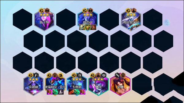 阵容组成: 弗拉基米尔、奈德丽、 娜美 、斯卡纳、韦鲁斯、俄洛伊、索尔、娑娜