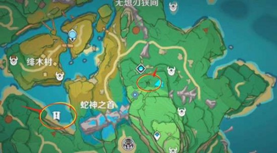1、先去下图所示的位置寻找镇物,打开元素视野就可以看到了。