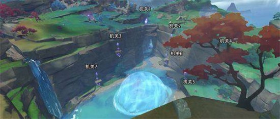 2、地图里有七个机关,1~3号机关调仰角中,4~7号机关调中。