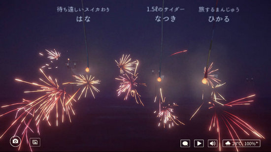 游戏中的天气状况会依照现实世界而改变,根据不同的温度和天空环境燃放不同的烟花。玩家可以一个静静凝望,也可以手捧着与家人朋友聊天,甚至与陌生人一起共度治愈的时光,并拍照分享。