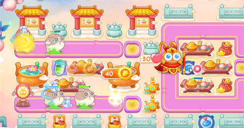 5、右侧中间开完之后我们开左侧和上侧的道具,开完的位置放置船锚和雷达,之后就是打桃子了