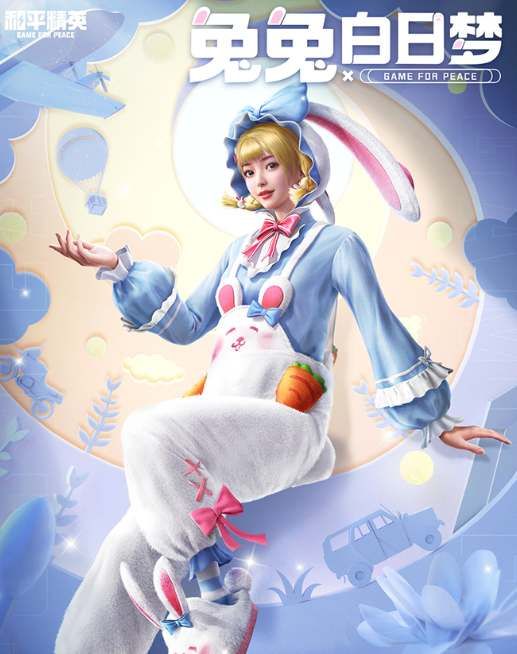 1、2022中秋节上线的全新系列皮肤为【兔兔白日梦】,这款皮肤的海报如下图所示,同系列的还有Scar-L的武器皮肤、背包、降落伞、手雷等道具的皮肤;