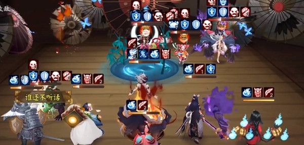 【一段】第一回合:我方御怨般若使用二技能'积重难返',目标敌方式神。第二回合:我方御怨般若使用三技能'予愿必还',目标敌方日和坊。第三回合:我方座敷童子使用三技能'祸福相生',目标我方式神。第四回合:我方御怨般若使用三技能'予愿必还',目标敌方鬼王酒吞童子。【二段】第一回合:我方御怨般若使用一技能'恨返',目标敌方雨女。第二回合:我方不知火使用一技能'初舞',目标敌方雨女。第三回合:我方御怨般若使用二技能'积重难返',目标敌方式神。第四回合:我方铃鹿御前使用三技能'万羽浪行',目标敌方式神。第五回合:我方御怨般若使用一技能'恨返',目标敌方犬神。