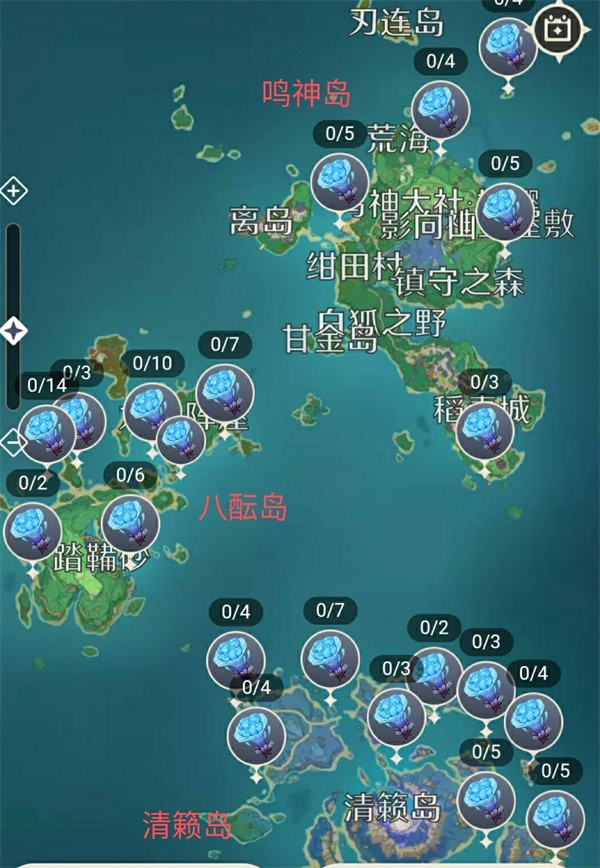 1、前往稻妻采集,在岛屿上一共145处海灵芝。