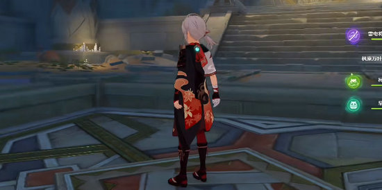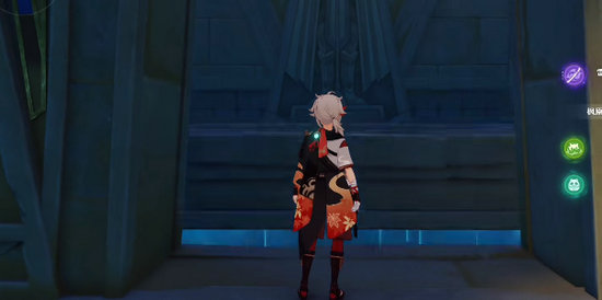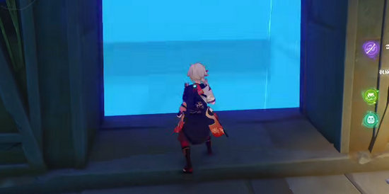 2、我们先触发右侧的升降机机关,然后会出现一层蓝色的屏障。