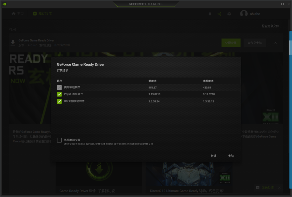 4、玩家驱动下载完后,点击自定义安装就会出现下图所示的界面,然后勾选左下角后开始安装。