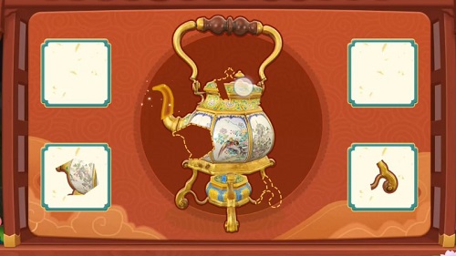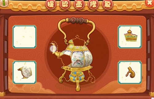 2、随后玩家修复壶帽,玩家按住右上角提梁壶的壶帽放到缺少的部分上。
