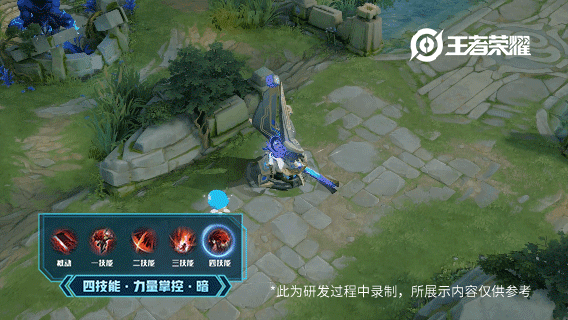神鸟翱于九天之际,吟唱神祇的符咒,在保证技能辨识度的前提下,选用神鸟与符咒的元素,神鸟与世冠的凤鸟相互呼应,符咒更加具有玄幻色彩,强化表达其“神”的身份。