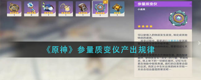 本文带来原神参量质变仪产出规律,希望对大家有所帮助!在原神游戏中,玩家可以通过参量质变仪,把一些不需要的材料变成所需的材料。今天小编给大家带来了《原神》参量质变仪产出规律的内容,感兴趣的小伙伴们一起来看看吧。