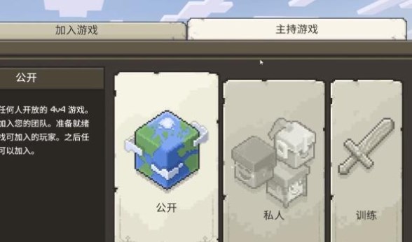 1、选择对战模式,选择【主持游戏】,进入到游戏中去创建房间。