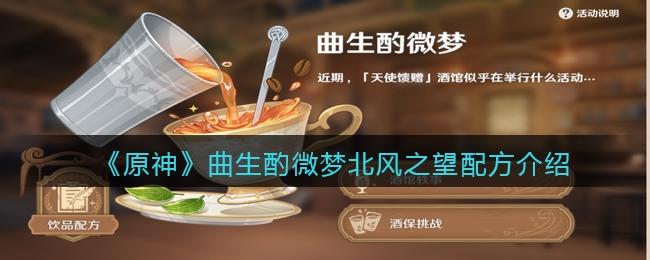 原神曲生酌微梦北风之望配方是什么?许多玩家应该还不清楚原神曲生酌微梦北风之望配方是什么,下面小编就为大家带来了原神曲生酌微梦北风之望配方介绍一览,希望能帮助到那些急于需要答案的小伙伴。