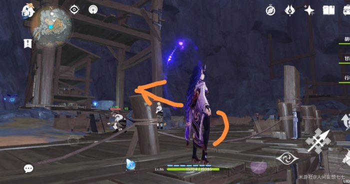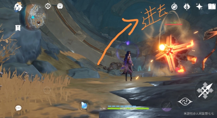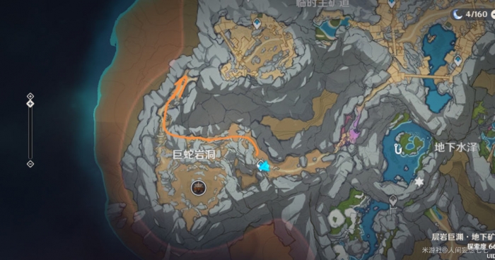 首先传到巨蛇附近的锚点,然后沿着如图所示路线前进,途中有怪物和引路仙灵注意别丢了。